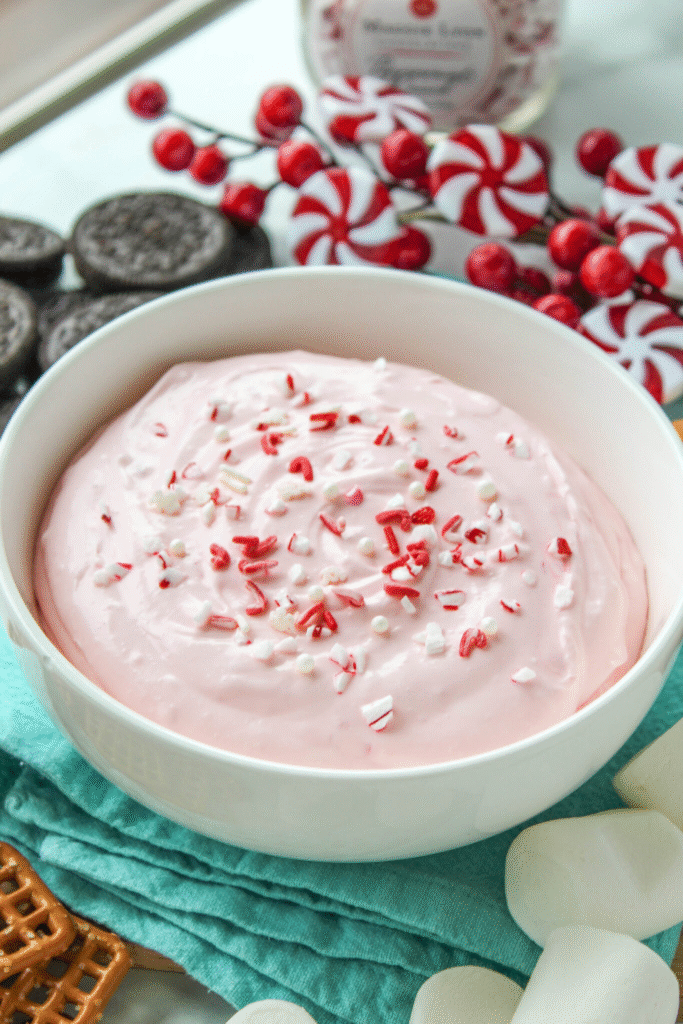 “Easy to make fun and festive Christmas dip with a punch of peppermint in every bite!“