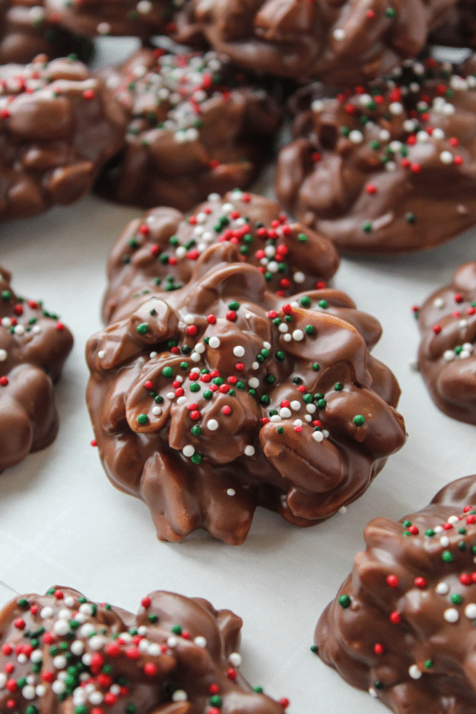 “A super easy crock pot candy wrapped in smooth chocolate and sprinkled with addictive toffee bits in every bite!“