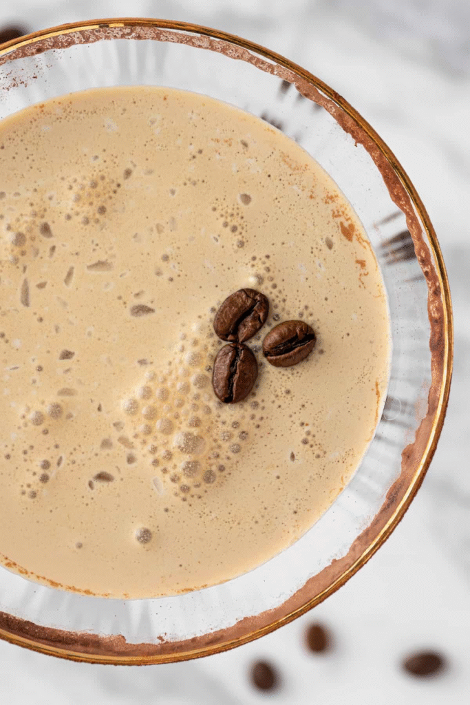 “This creamy espresso martini mocktail is the best virgin, non alcoholic coffee mocktail.“