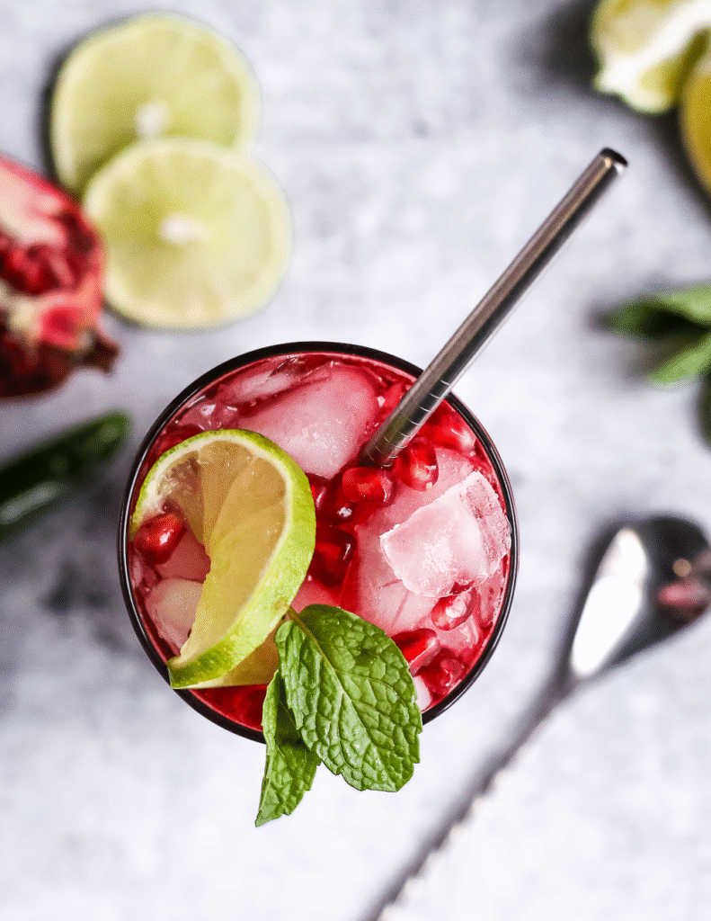 Spicy Pomegranate Mojito Mocktail (Non-Alcoholic Pomegranate Cocktail)