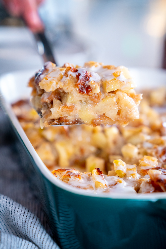 “Made with tender apples and buttery croissants, this casserole is deliciously indulgent and packed with warm fall flavors.“