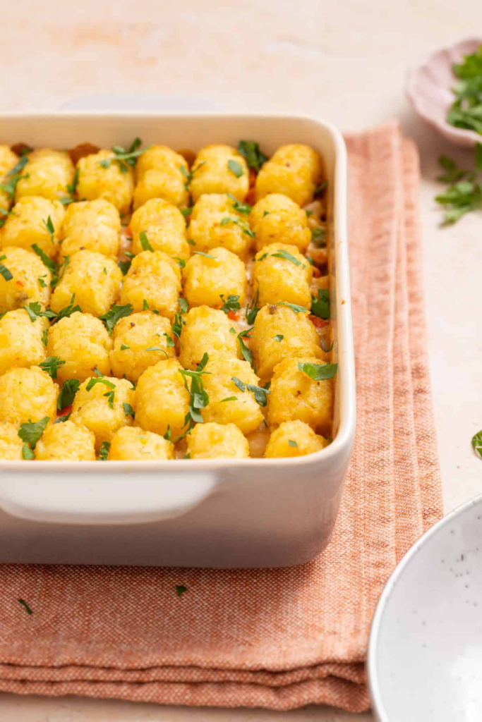 “Creamy veggies topped with crispy, golden tater tots—what’s not to love?! It takes 10 minutes of prep, and it’s always a hit, whether it’s a family dinner or a cozy night in. Simple, satisfying, and seriously delicious!“