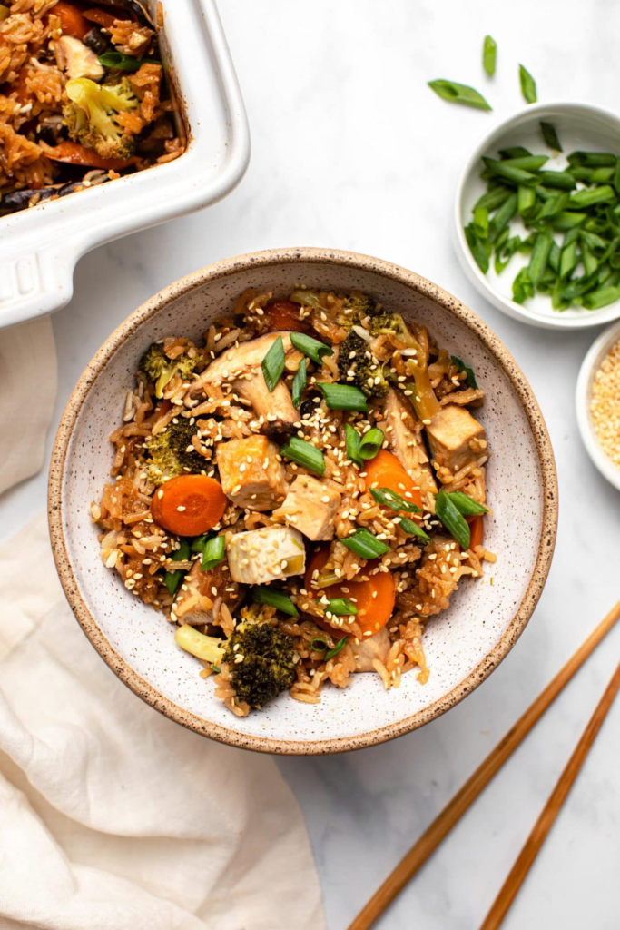 Dump & Bake Teriyaki Tofu Rice Casserole