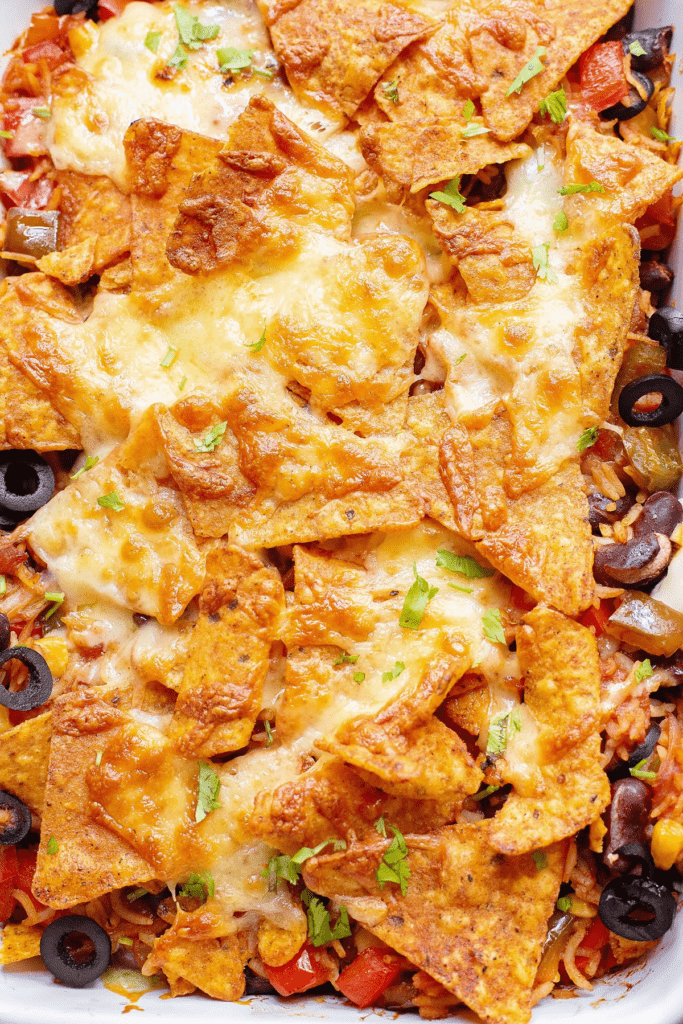 “This hearty Cheesy Dorito Veggie Casserole is a vegetarian dinner recipe filled with rice, beans, sweet corn, salsa, Manchego and Mexican inspired flavors for a flavorful dinner the whole family will love!“