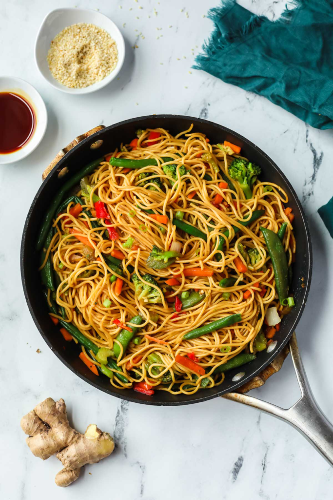 “This simple vegetable lo mein recipe is filled with colorful vegetables, tender noodles, and a savory homemade sauce. This easy recipe is satisfying and healthy, perfect for a weeknight meal.“