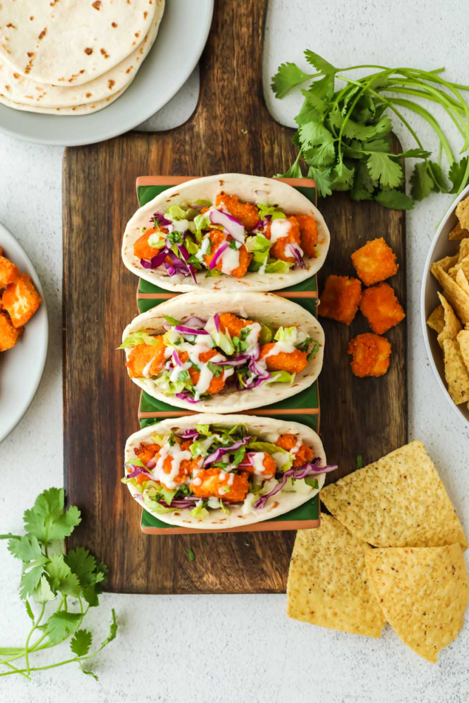 “These buffalo tofu tacos are deliciously spicy, and you’ll be surprised how easy it is to make crispy tofu in the oven. This recipe is perfect for a tasty plant-based taco night!“