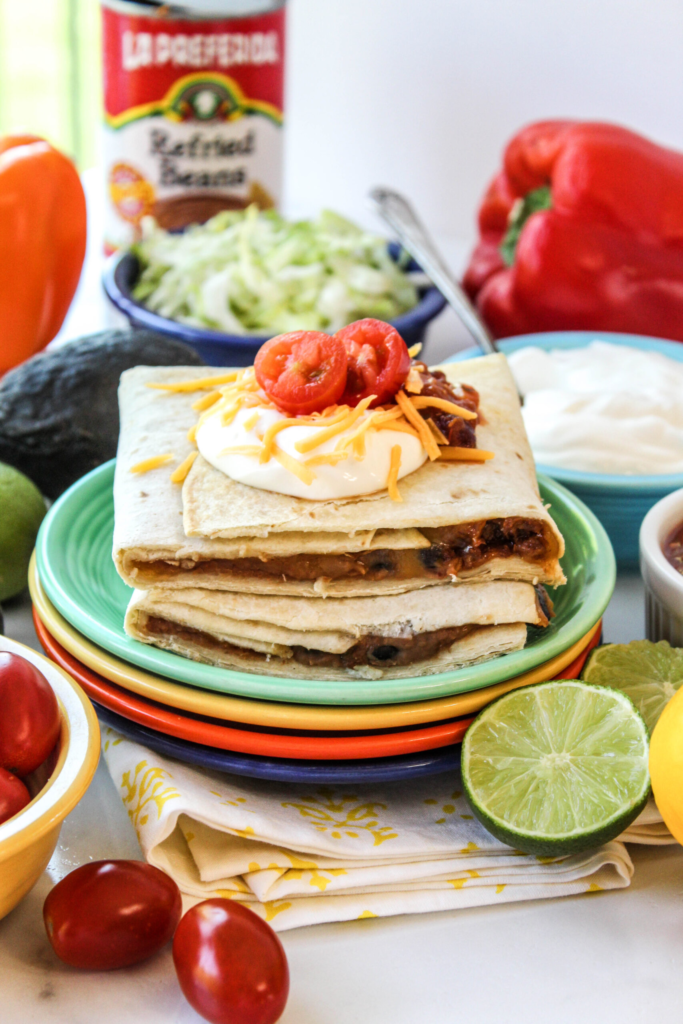 “A quick meal with a crispy shell, soft beans, and melty cheese in every bite! Garnish with your favorite toppings!“