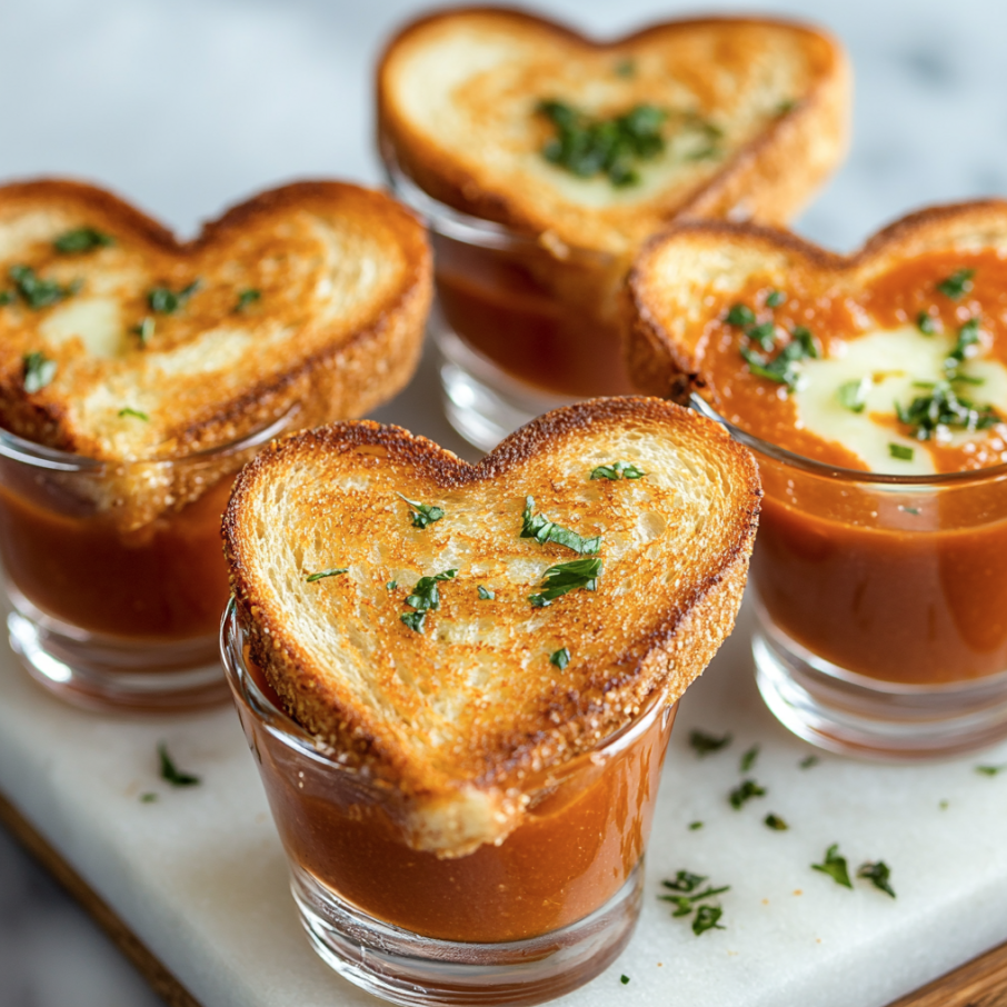 “Who doesn’t love grilled cheese?! These bite-sized, heart-shaped versions are perfect for dipping into tomato soup for a hot appetizer option on Valentine’s Day.”