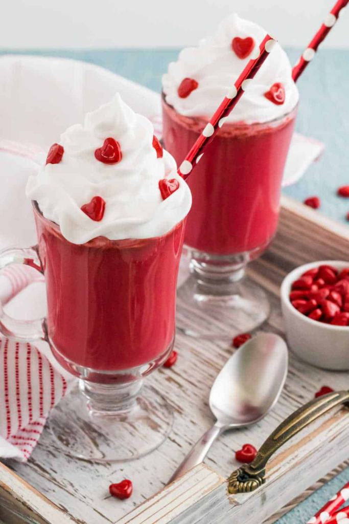 “Indulge in this rich, creamy, and luxurious drink for Valentine’s Day. Red Velvet Hot Chocolate is super chocolatey and has all the flavors of the classic cake.”