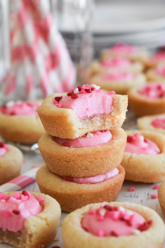 “These adorable Sugar Cookie Cups filled with buttercream are the tastiest little treats!! Keep them simple or dress them up for any holiday or occasion!“