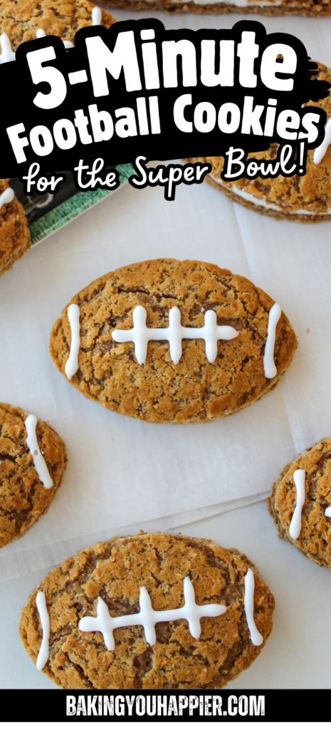 These Oatmeal Creme Pie Footballs are easiest, and fastest, to make with a football shaped cookie cutter. But if you don’t have one, you can easily carve a football shape into the cookie with a sharp knife!