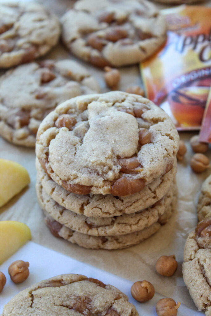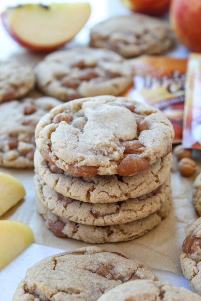 These taste like a warm mug of apple cider in soft, chewy cookie form oozing with bits of caramel in every bite!