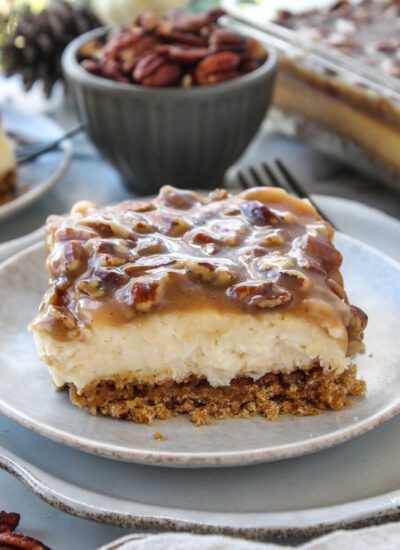 Praline Crumb Caramel Cheesecake Bars