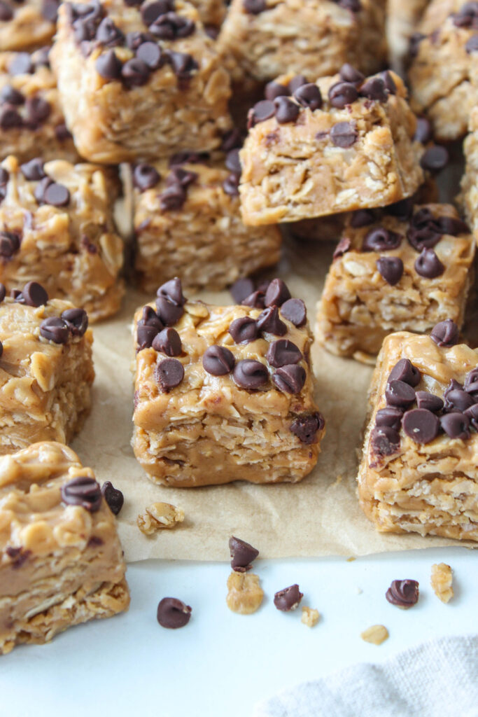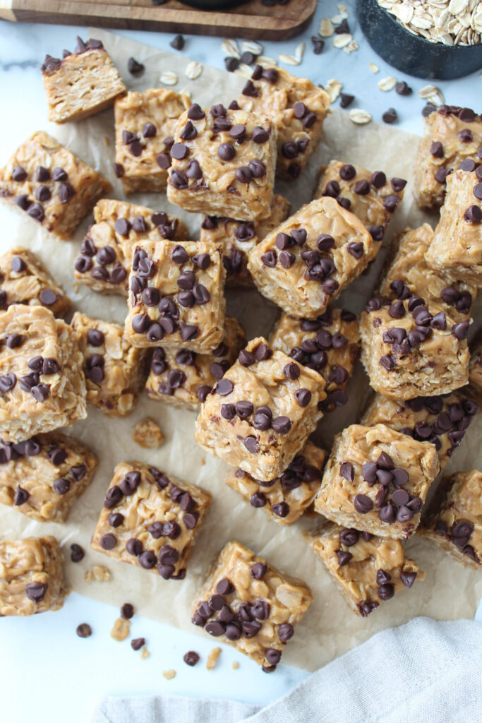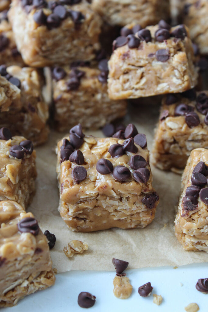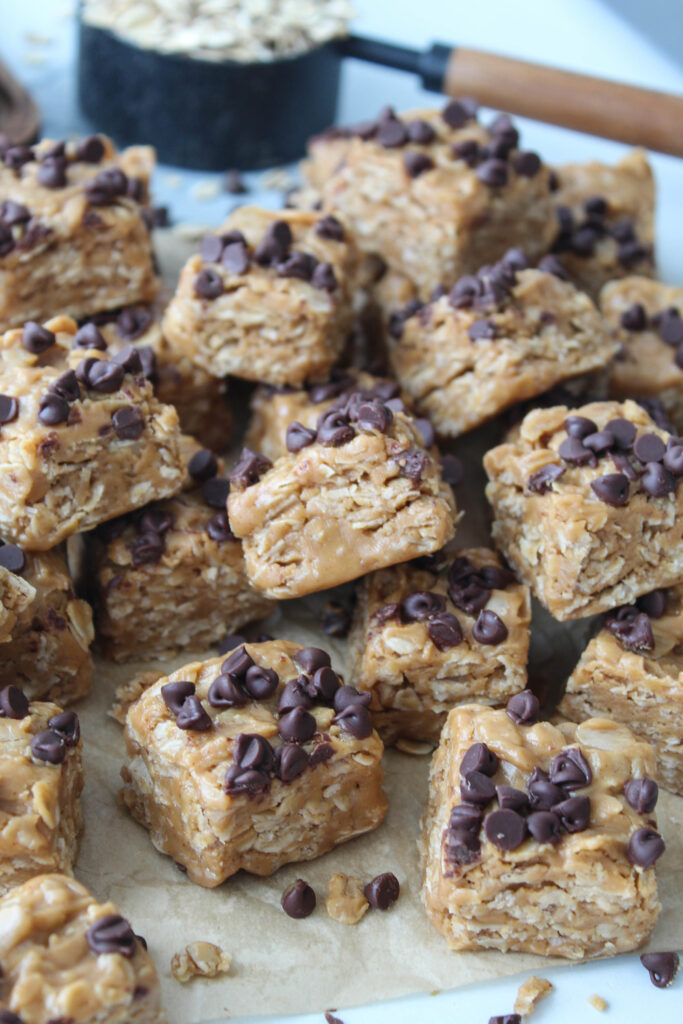 - Size – You can make these any size you’d like, just change the pan size to 9 x 13 or 9 x 9. You can also cut them into No Bake Peanut Butter Oat Bars!