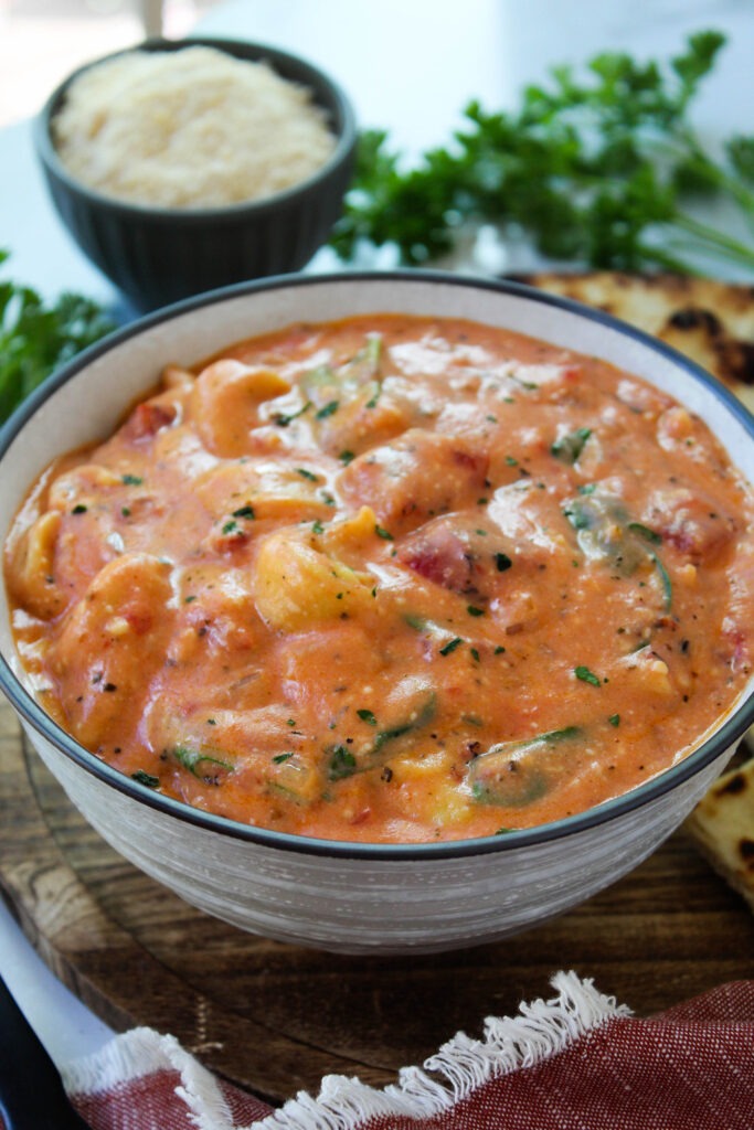 A bowl of pure comfort loaded with rich flavor and tender cheese tortellini! Every bite is warm and satisfying!
