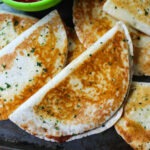 - Spread a heaping spoonful of the bean mixture onto half of a 8″ flour tortilla and fold in half. Repeat with remaining tortillas.