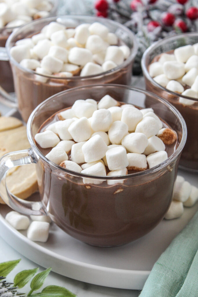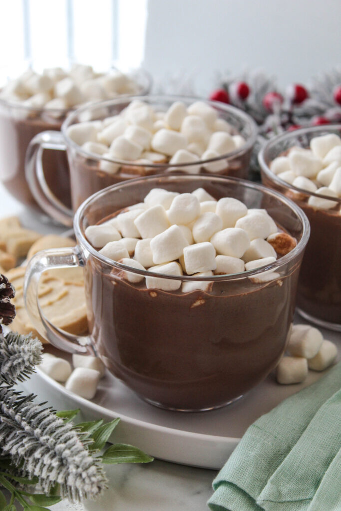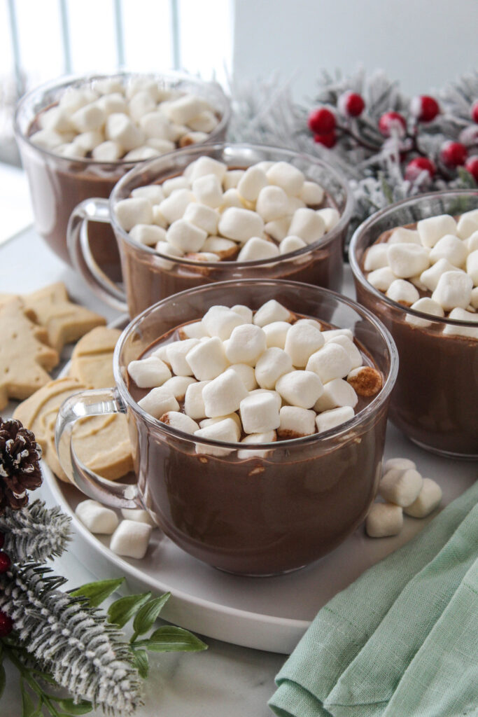 I think everyone, of all ages, loves coming inside to the nostalgia that hot cocoa brings! You can make a big batch of it to keep in the fridge and warm up when you are ready, you can serve at holiday parties, or give as gifts in jars to friends and family!
