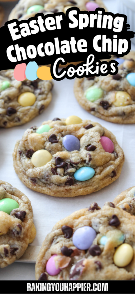 Soft, chewy Easter cookies loaded with pastel candies and melty chocolate. An easy, festive treat that is perfect for Spring!