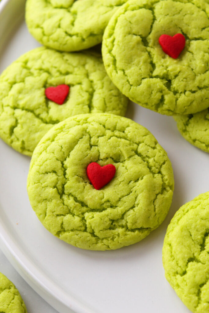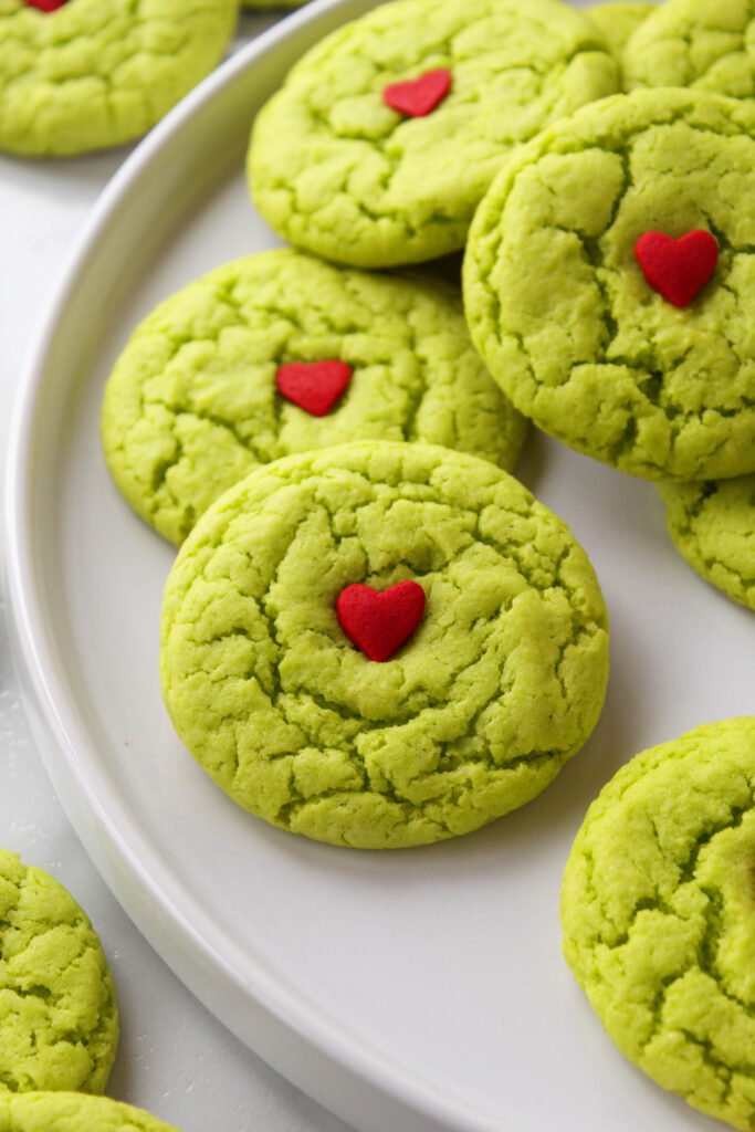 Have fun with your kids in the kitchen making these super easy Grinch Cake Mix Cookies! If you love the Grinch as much as I do, (HE’S MY FAVORITE!) then I think you will love Grinch Mini Cheesecakes, Grinch Pancakes, Grinch Dip, and No Bake Grinch Christmas Cheesecake, too!