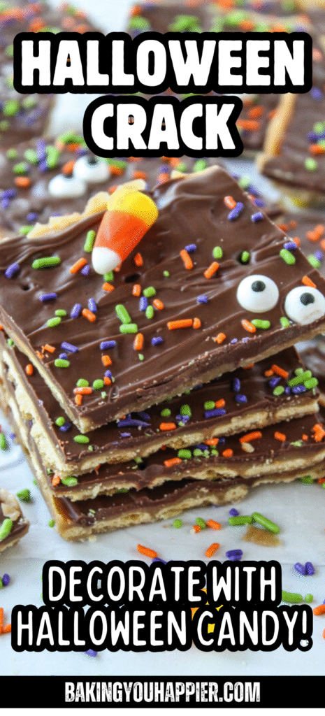 Halloween Crack, the ultimate sweet and salty addictive treat for Halloween! Top with sprinkles, candy eyes, and/or your favorite candies!