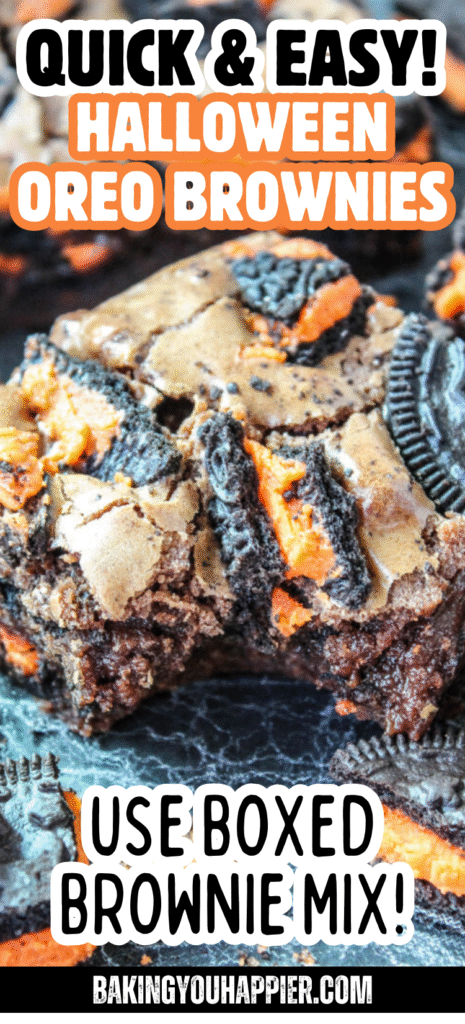 Rich and fudgy brownies packed with bright orange Halloween themed Oreo cookies in every bite!