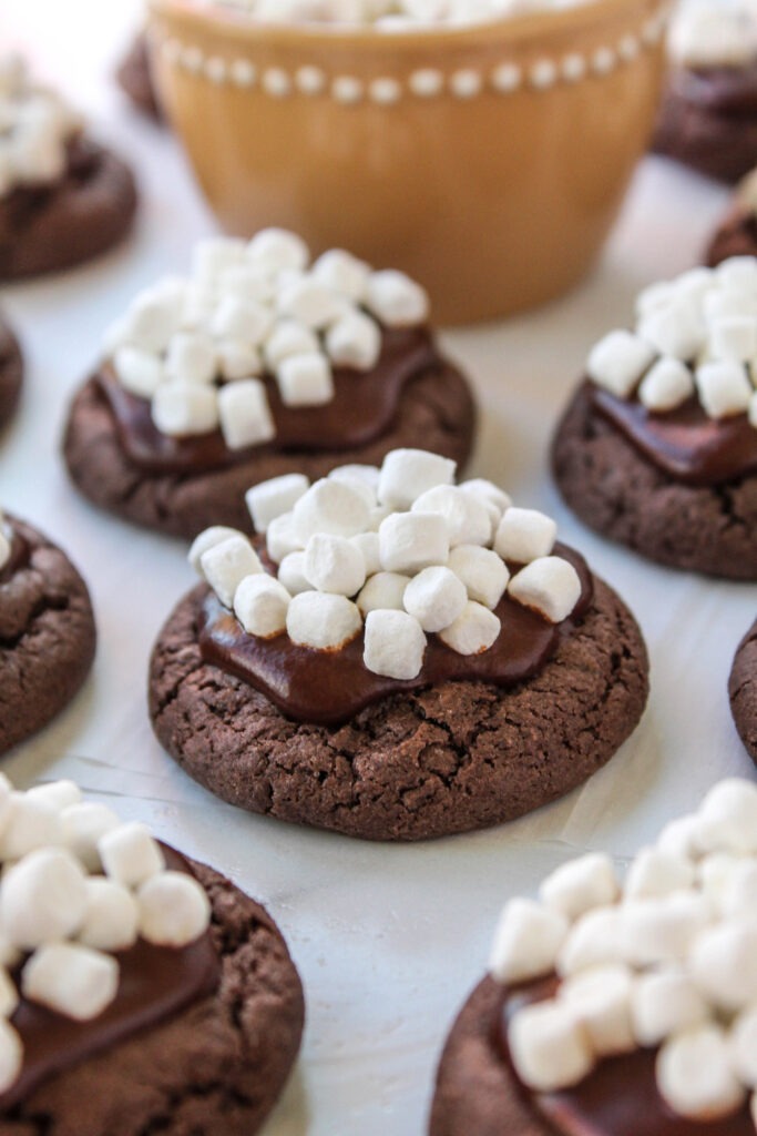 Soft, chewy cookies bursting with cozy chocolate flavor – just like a mug of hot cocoa, but in cookie form!