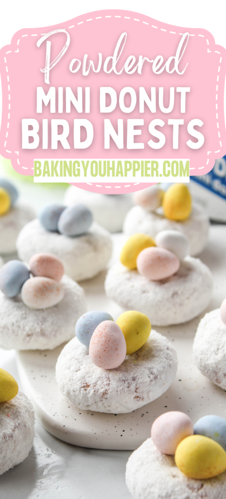 Just pull out store bought mini powdered donuts from the bag and set candy eggs on top to make a bird nest!