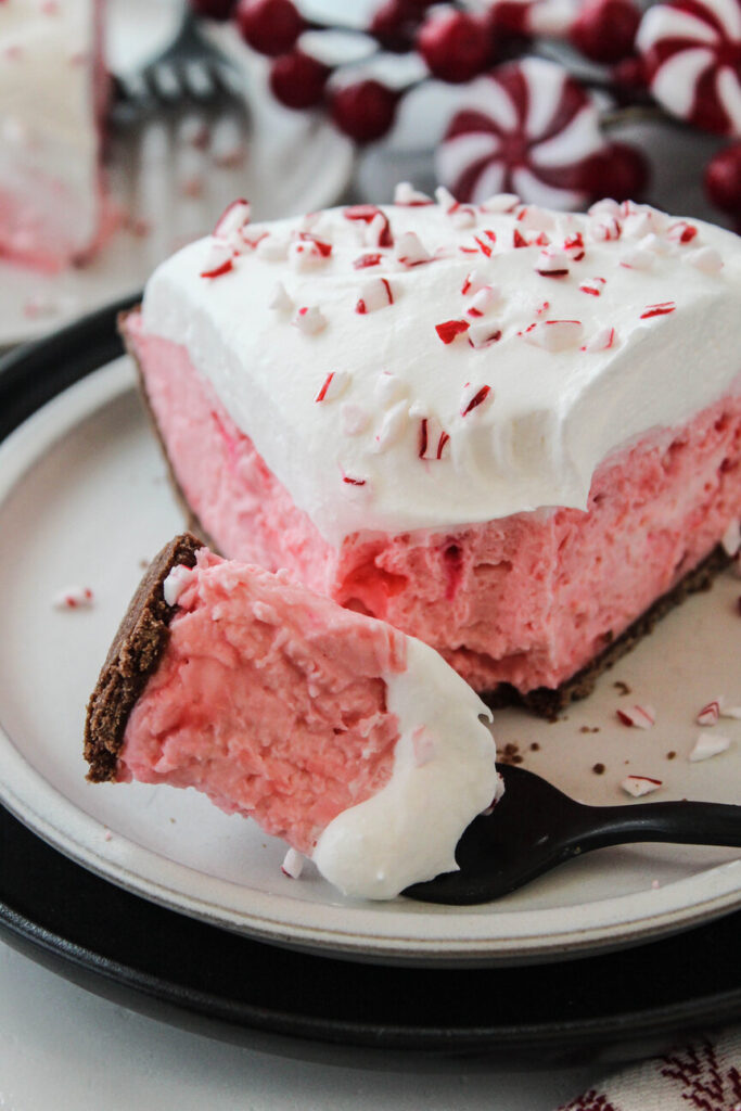 I don’t love the way these pictures turned out so let the pretty pink in this No Bake Peppermint Pie convince you into making it! If you like peppermint, I think you’ll love Peppermint Bark Cups, White Chocolate Peppermint Oreos, Peppermint Cheesecake Dip, Mini Peppermint Cheesecakes, and Peppermint Bark Fudge, too!