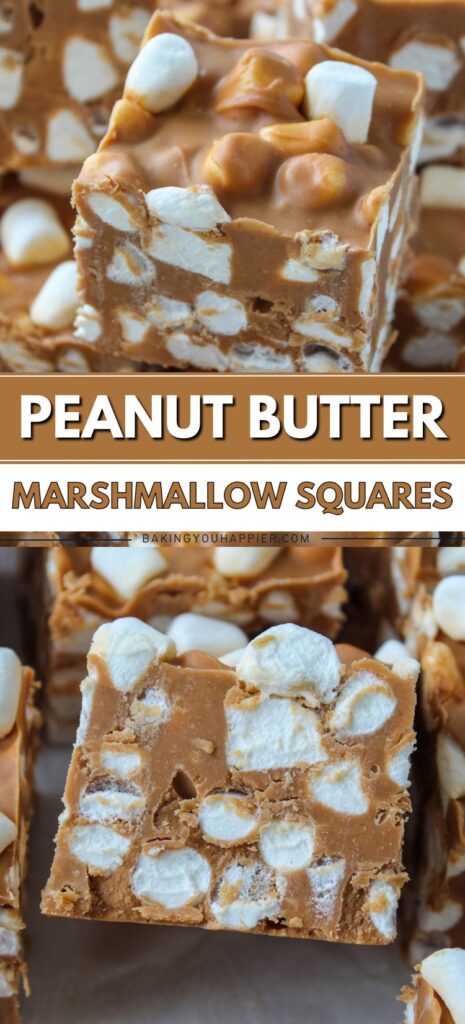 Peanut Butter Marshmallow Squares, mini marshmallows are stirred into melted peanut butter and butterscotch to form an easy delicious candy!