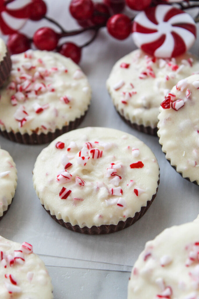 Peppermint Bark Cups, a festive treat put together in just a few minutes so you can sit back and enjoy the twinkling Christmas lights!