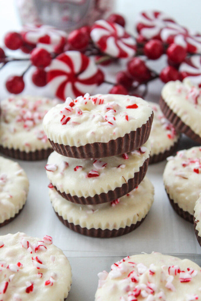 These Peppermint Bark Cups are a super easy way to kick off the holiday season! If you have more peppermint crunch to use up, you could make White Chocolate Peppermint Oreos, Peppermint Cheesecake Dip, Mini Peppermint Cheesecakes, Peppermint Bark Fudge, or Peppermint Bark!