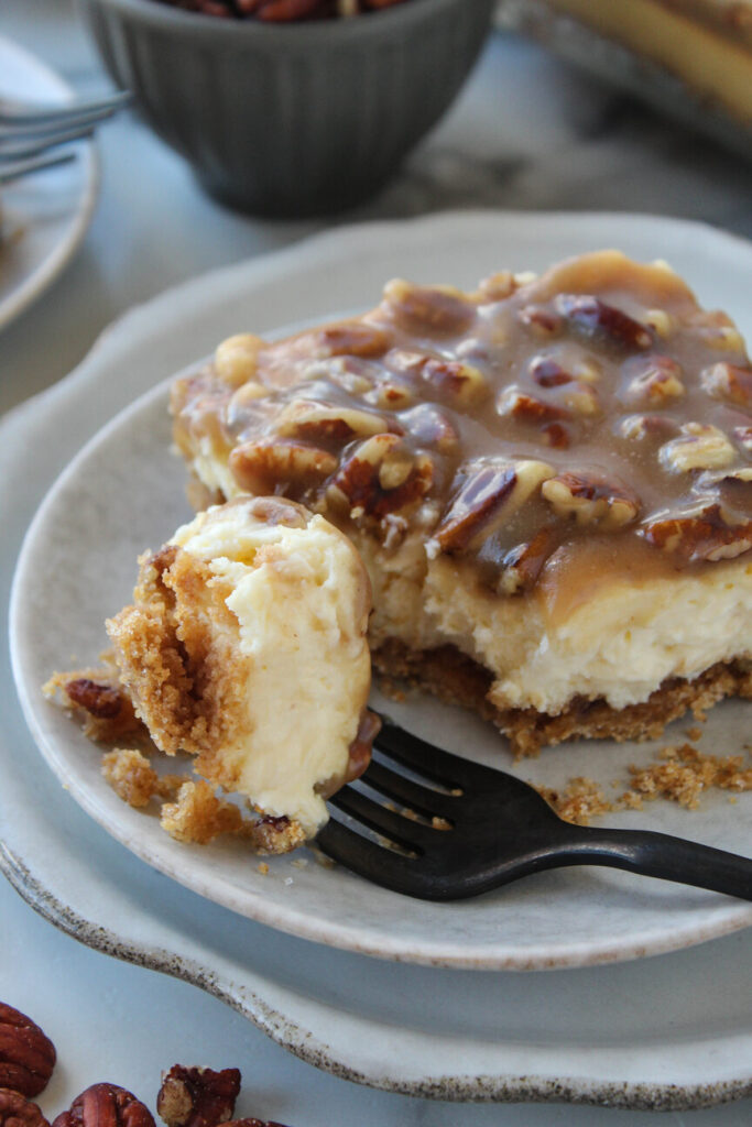 Praline Crumb Caramel Cheesecake Bars