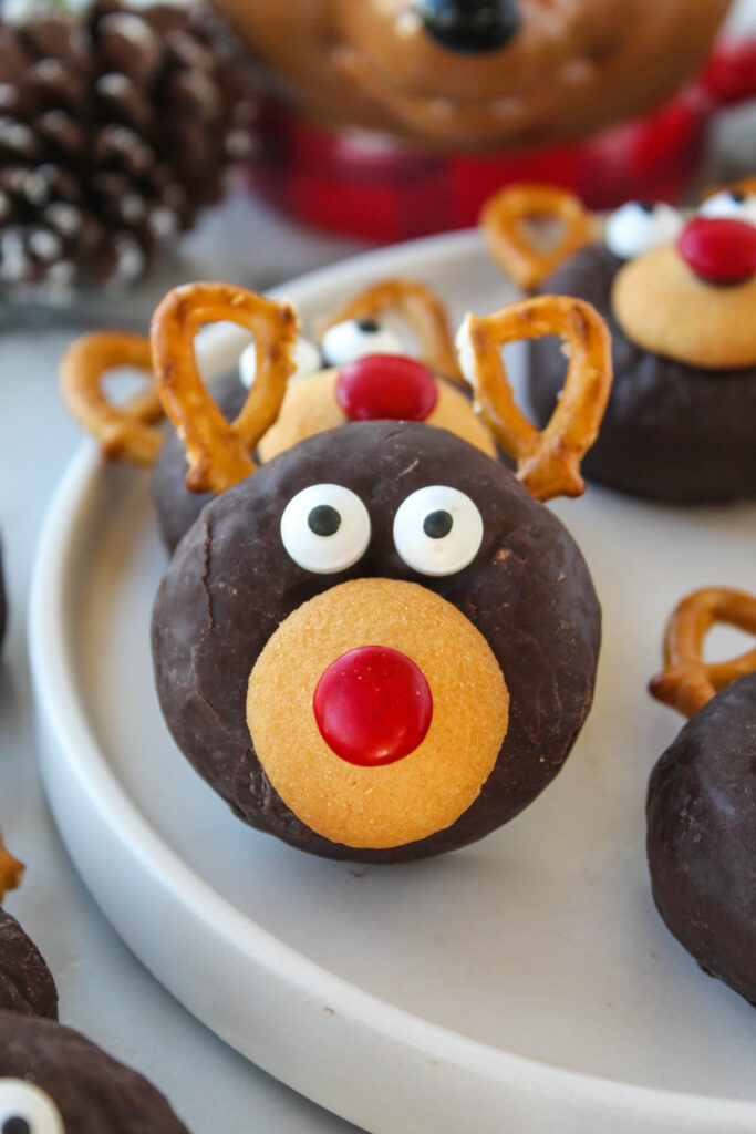 Adorable, festive holiday treats that turn simple donuts into cute, edible reindeer for Christmas morning breakfast!