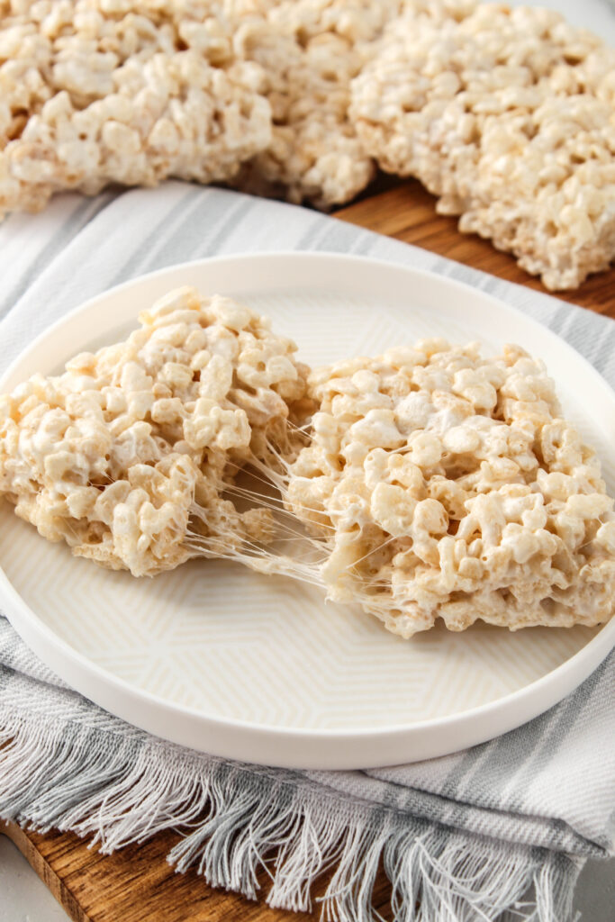 I always have bags of marshmallows and a box of Rice Krispies in my pantry at all times. Then I am always prepared to make a quick treat when I need something last minute! And they work for every season, too. You can sprinkle these with any holiday sprinkles you’d like!